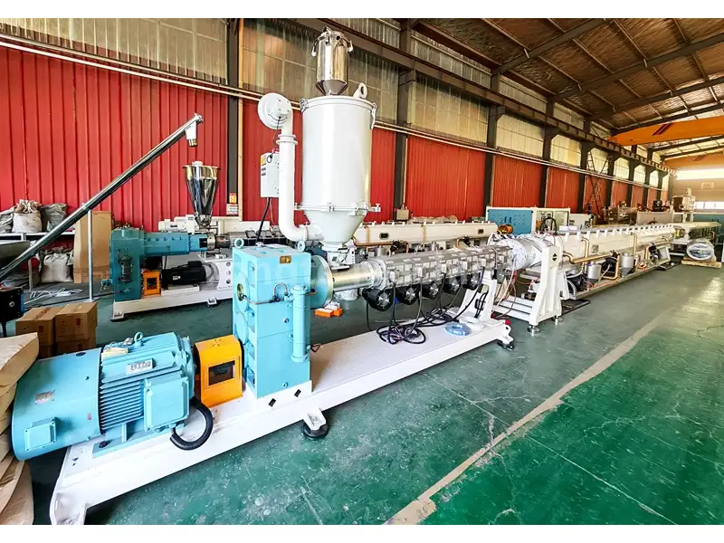 75-90KW enerji tasarruflu servo motora (güç kullanımını yaklaşık %20 oranında azaltır), doğrudan tahrikli dişli kutusuna (daha iyi iletim verimliliği ve daha kolay bakım için), dayanıklı vidalı namluya (hassas nitrürleme ile 38CrMoALA alaşımlı çelikten yapılmıştır), verimli kızılötesi ısıtma bobinlerine ve otomatik sıcaklık kontrolüne (Omron'un yüksek hassasiyetli kontrol cihazını kullanarak) sahip SJ75/33 yüksek verimli tek vidalı ekstruder kullanır. Tüm bu özellikler, üretim sırasında malzemenin erimesini stabil, ekstrüzyon basıncını eşit ve ürün kalitesini tutarlı tutmak için birlikte çalışır.