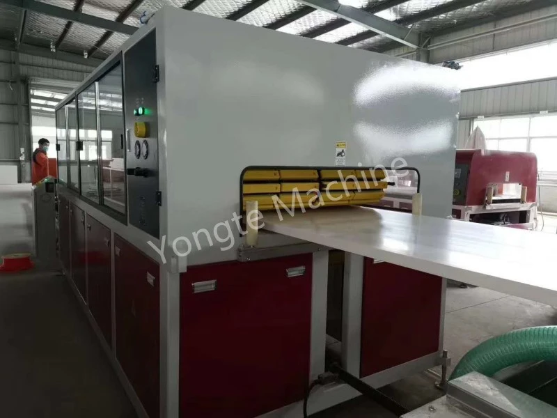 Ekipman Modeli ve Yapılandırması: Kurulu hat, otomatik besleme, vakum kalibrasyonu, stabil rasyon, hassas kesim, kenar düzeltme ve gelişmiş kontrol sistemi ile donatılmış SJSZ80/156 konik çift vidalı ekstrüzyon sistemini benimser. Hat max yapabilir. Dolgu maddesi olarak PVC reçine ve CaCo3 ile içi boş kesitlere sahip 900 mm genişlikte PVC kapı panelleri.