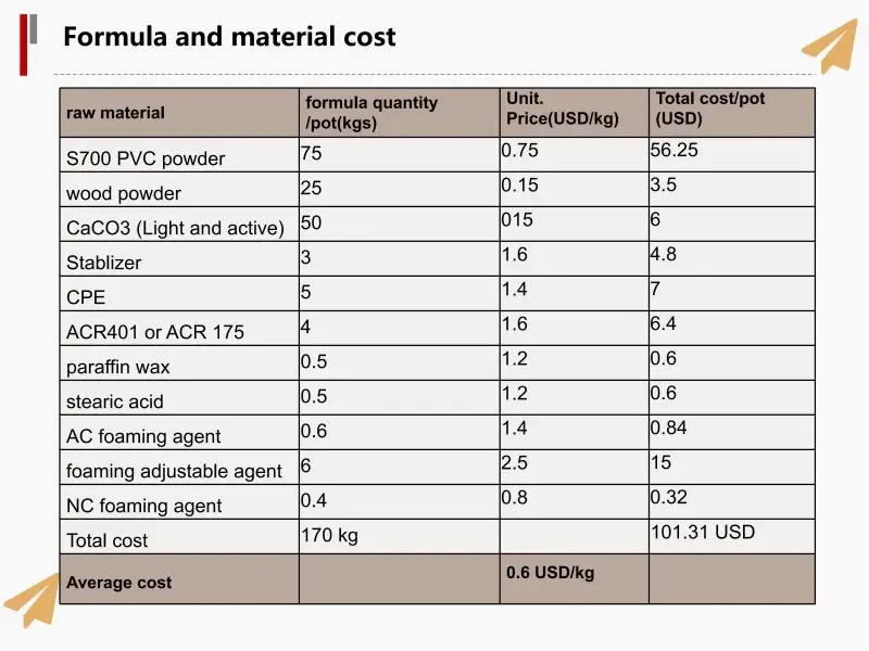 WPC kapı paneli ve kapı çerçevesi yapımına yönelik hammadde şunları içerir: PVC reçine, ahşap tozu, CaCo3 ve Kimyasal katkı maddeleri; üretici, formülasyonu pazardaki ürün ihtiyaçlarına göre ayarlayabilir.